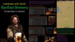 Bartfast Brewery just upgraded to level 3 small house. Come by and see the fun changes. There is now an inn upstairs (and will be used occasionaly for events as well in the further away future - Cee Blue inists on a minotaur-mage disco and I'll make it happen... eventually). Come and rest yer head. Use the password "sample" for free beer from the access chest by the kegs by front door or free food from access chest in kitchen (courtesy of Acts II BBQ). (edited)