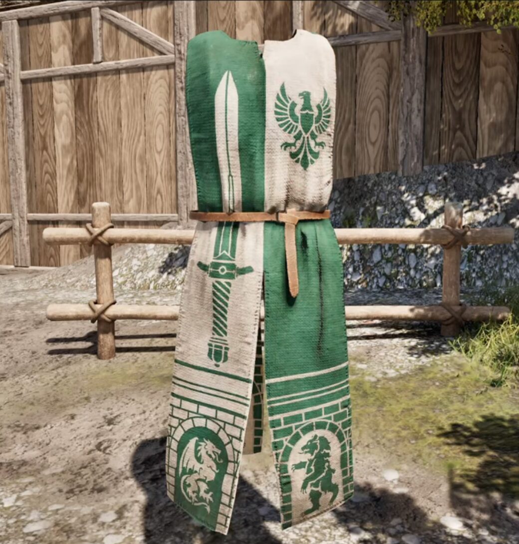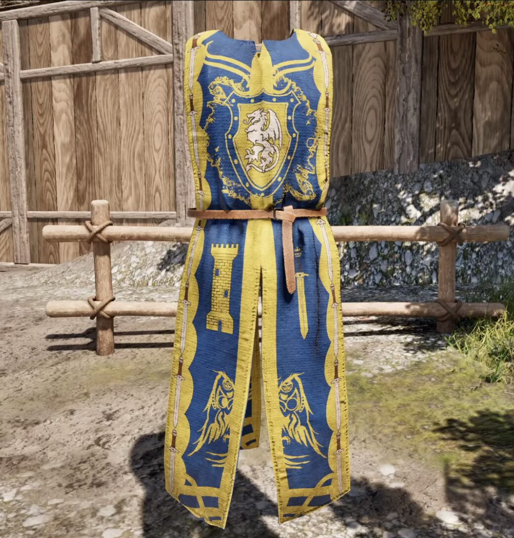 - You will be able to select how many sections and of which shapes you would like to split your tabard into, with each section offering multiple options for primary and secondary colors , patterns and masking.