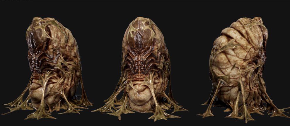 The other Tagmatons located in their nests underground then enter it from the rear end and move through the inside of it in a fluid,both by crawling as well as being pushed along by contracting muscles similar to a mammal digestive system’s intestines. They are then expelled through the mouth of this creature, and begin transforming the environment around the Disgorger.